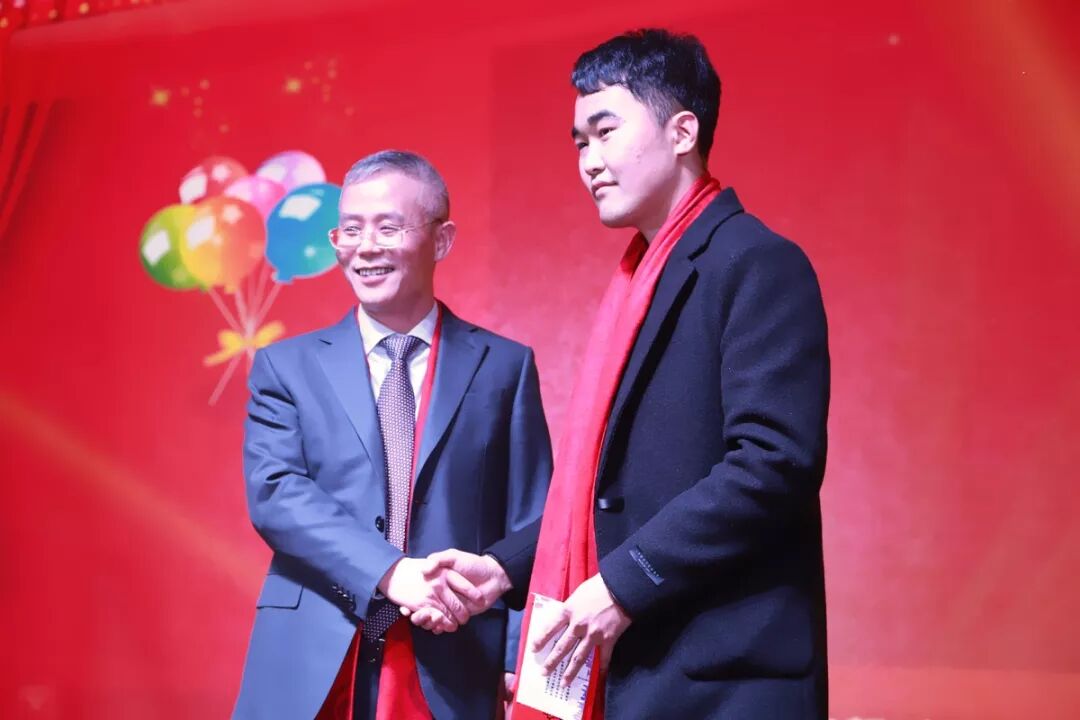 颜钛集团董事长杨涛先生向莅临年会现场的霍山县领导致以最热诚的欢迎,也感恩县政府一直以来给予安徽颜钛的大力支持。杨董表示,每一个颜钛人在过去一年所做的努力和取得的成绩都是值得骄傲的,祝福所有兄弟姐妹新年快乐,更上层楼。