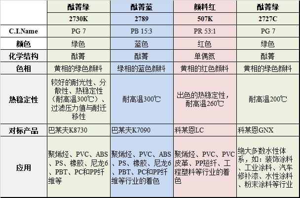 金九银十来了,颜钛作为Sudarshan(苏达山)重要的代理商,现将塑料行业重要产品盘点如下,主要包括:酞菁绿2730K、酞菁蓝2789、颜料红507K、酞菁绿2727C。