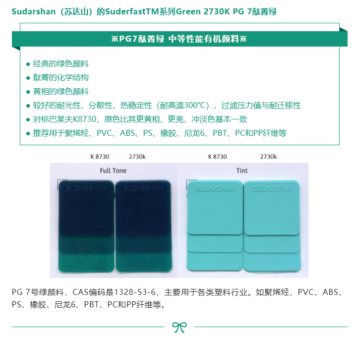 苏达山(Sudarshan)高质量的颜料和预分散体系为塑料、印刷油墨、涂料、纸张、纺织品、化妆品和建筑行业提供卓越的应用性能,长效的保护,艳丽的色彩,特殊的色光效果等。